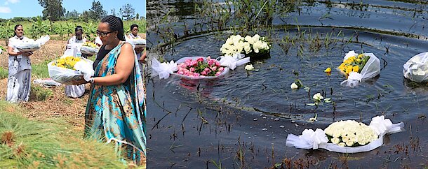 Government officials including The Speaker of the Parliament chamber of Deputies, Minister of Gender and Family Promotion, Senate Vice President, security organs, Unity Club and others lay a wreath to Rufunzo swamp where thousands Tutsi were thrown including women who were raped before being killed.